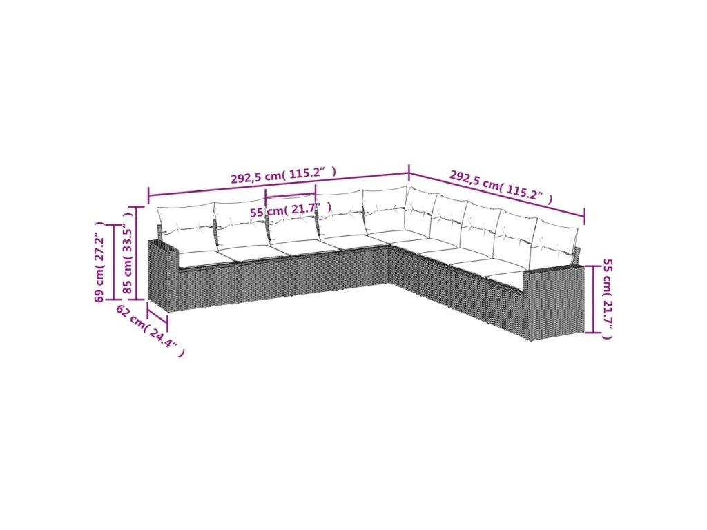9dílná zahradní sedací souprava s poduškami šedá polyratan 3219080
