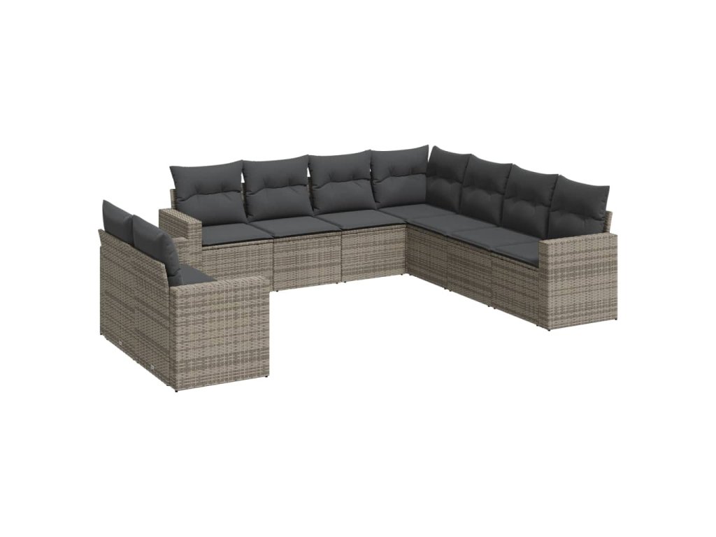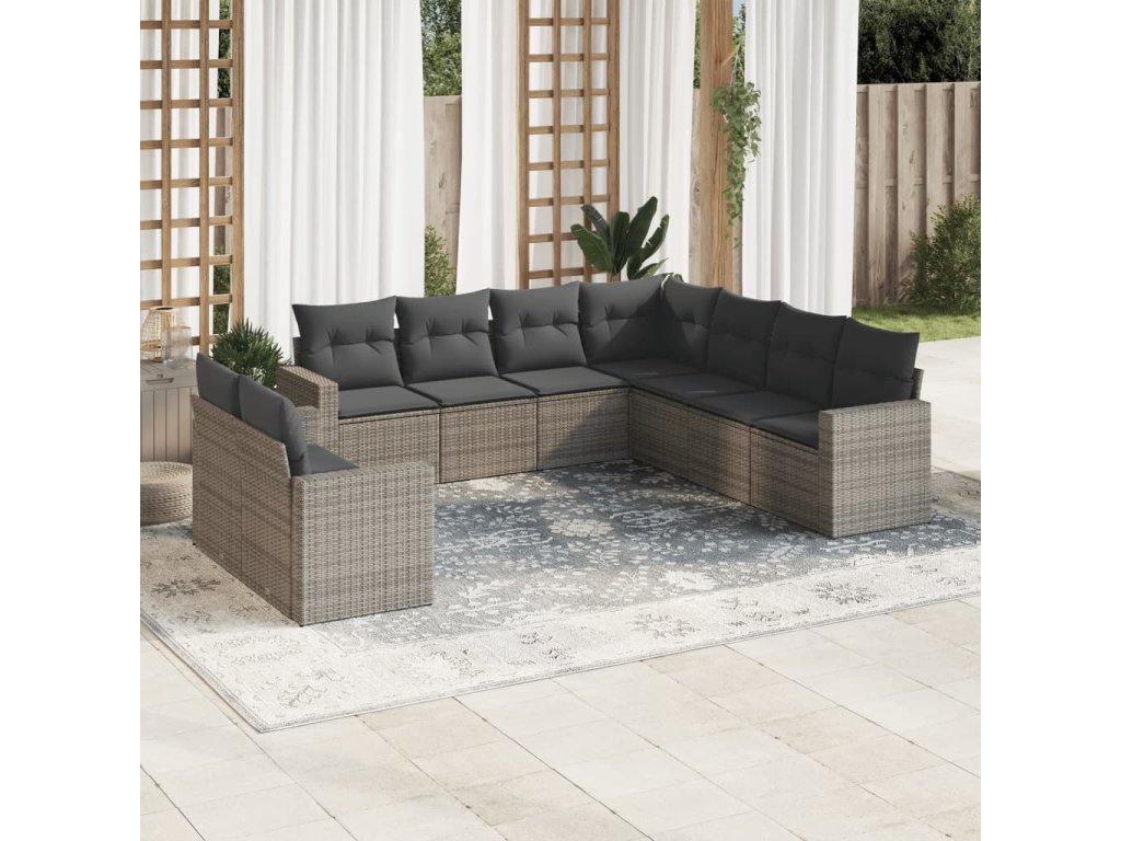 9dílná zahradní sedací souprava s poduškami šedá polyratan 3219140