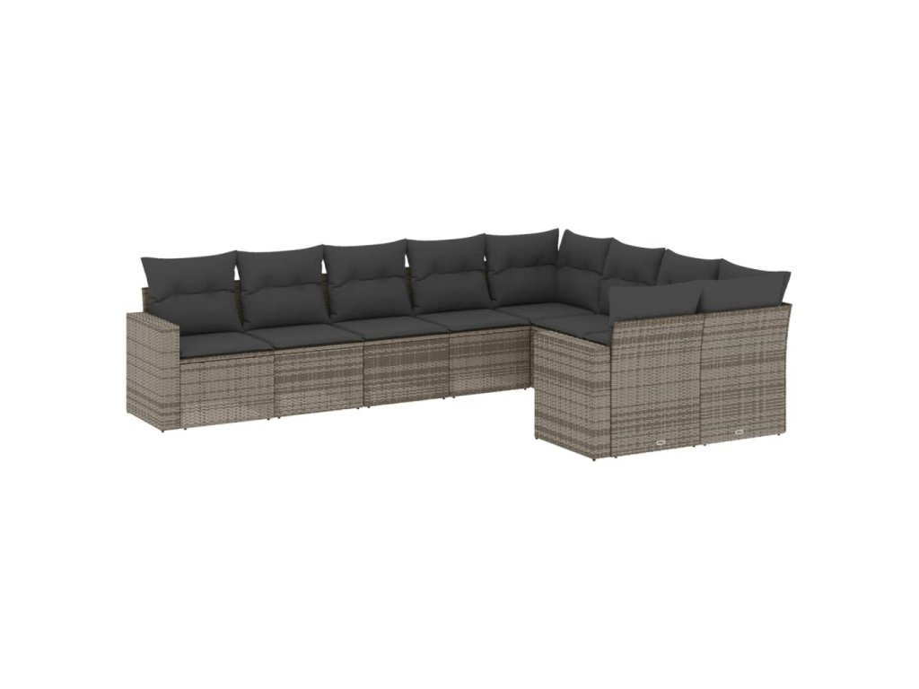 9dílná zahradní sedací souprava s poduškami šedá polyratan 3219430