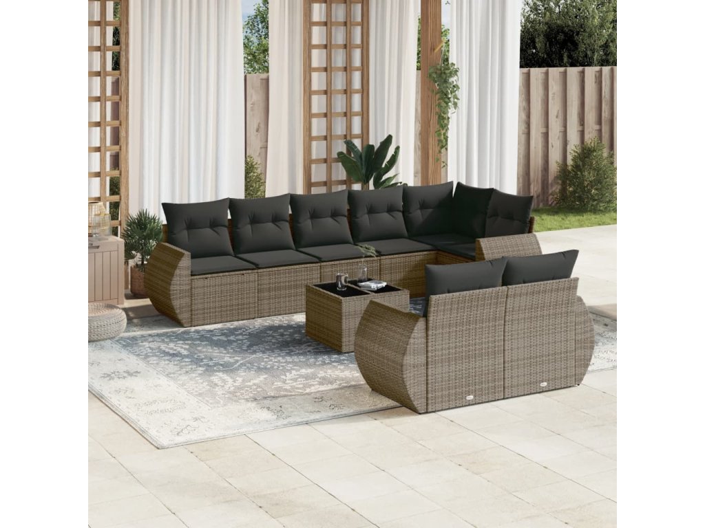 9dílná zahradní sedací souprava s poduškami šedá polyratan 3221629