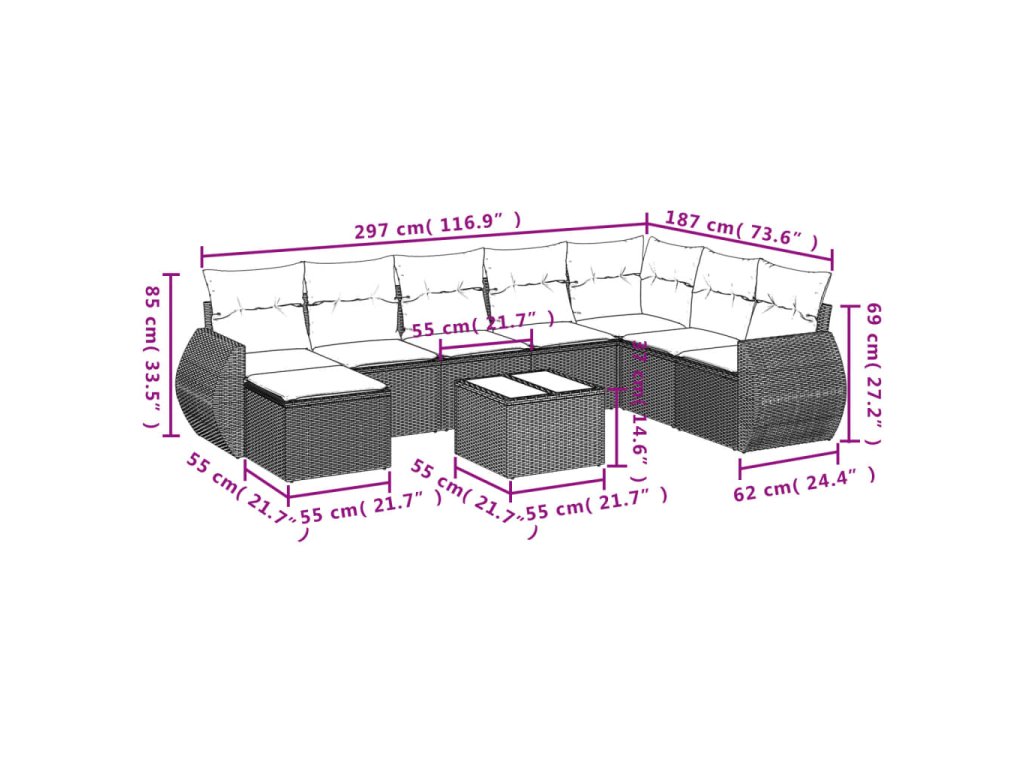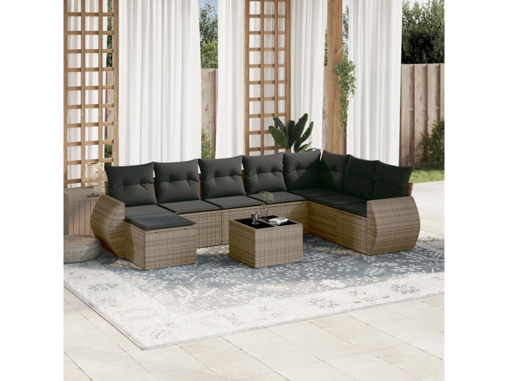 9dílná zahradní sedací souprava s poduškami šedá polyratan 3221769