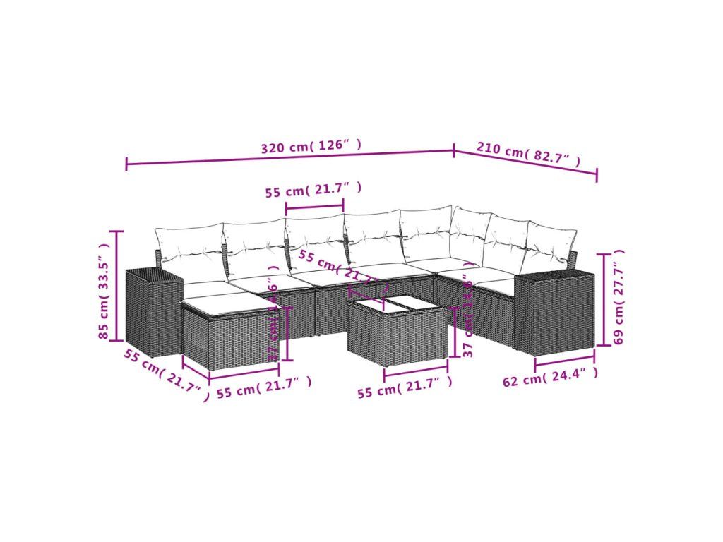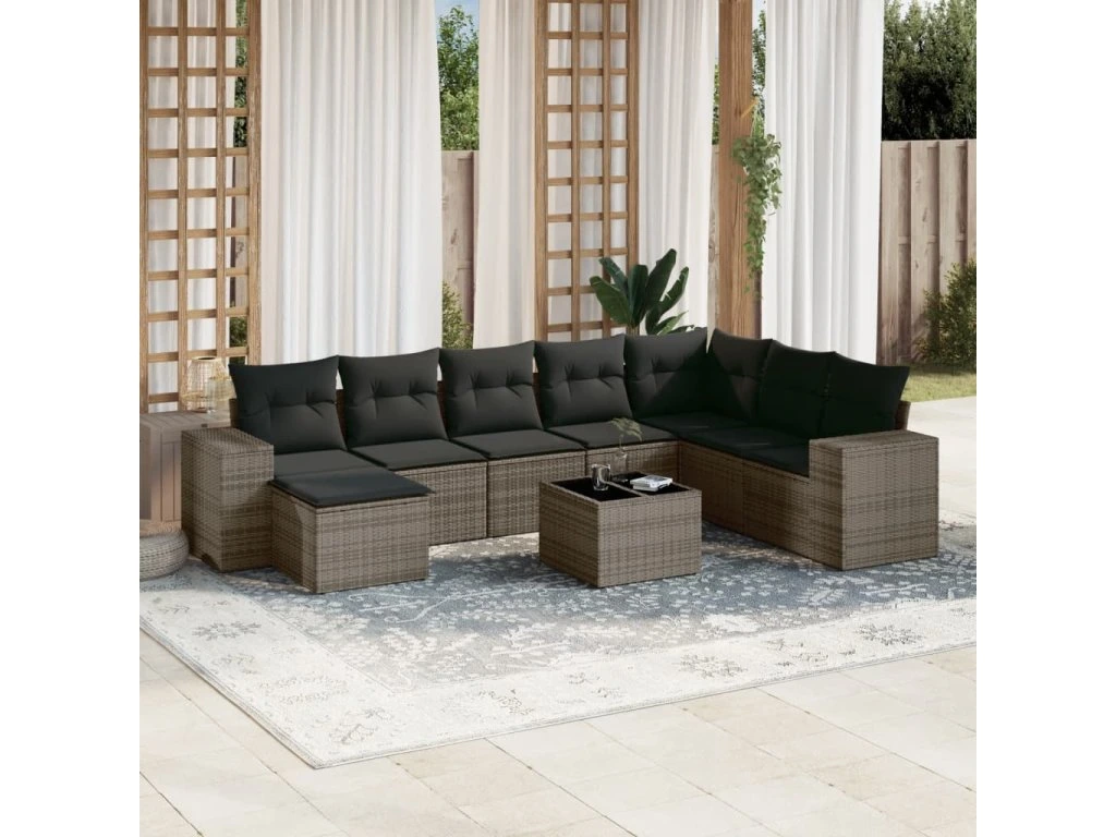 9dílná zahradní sedací souprava s poduškami šedá polyratan 3222969