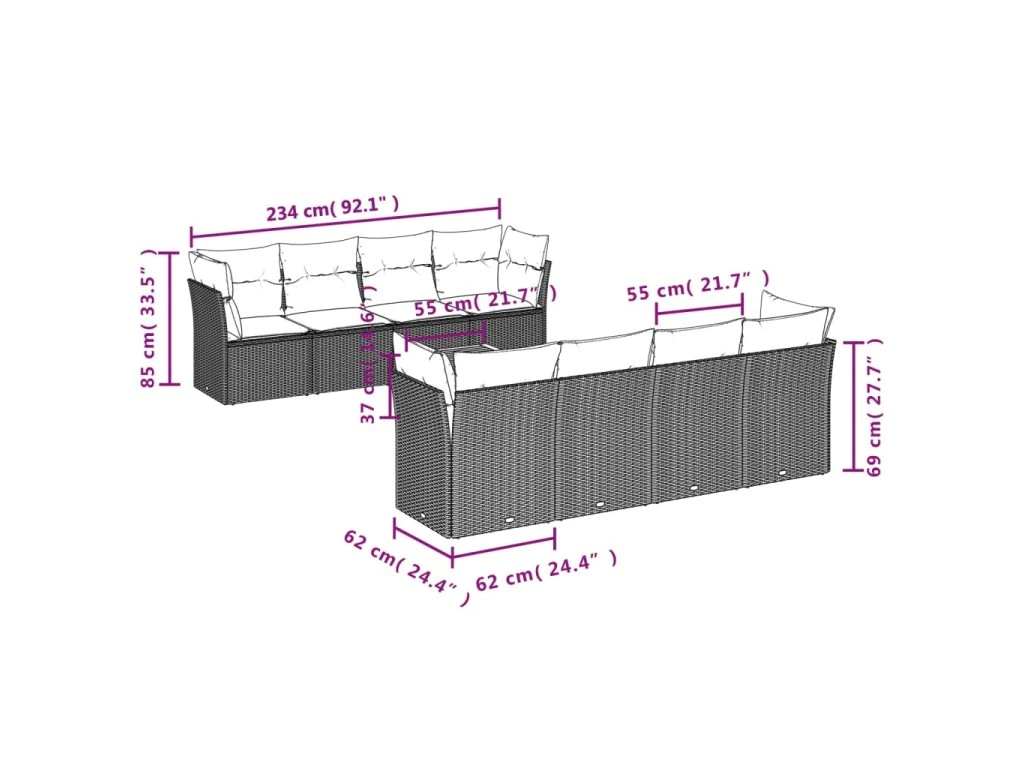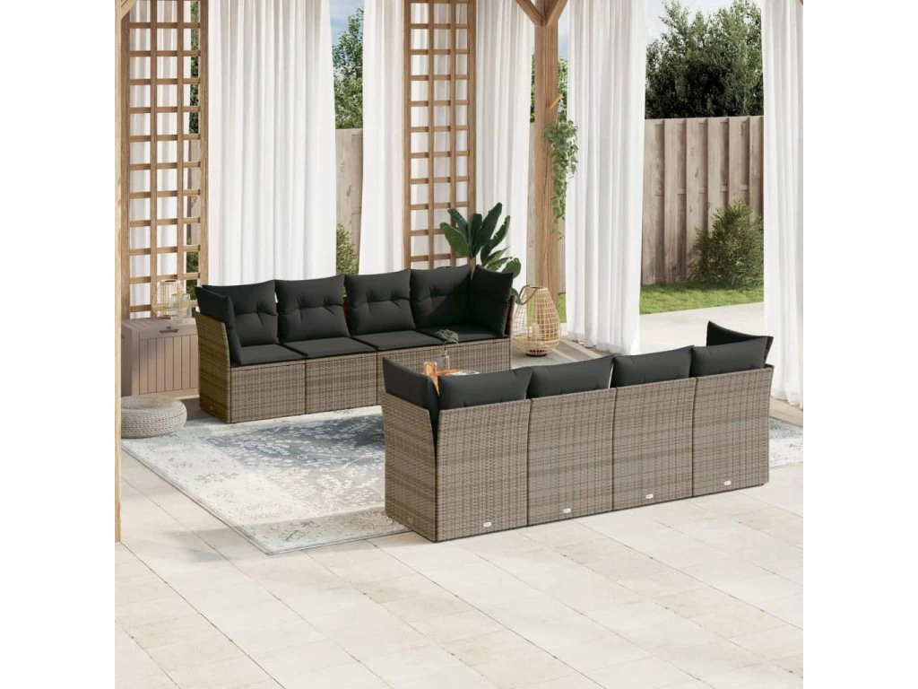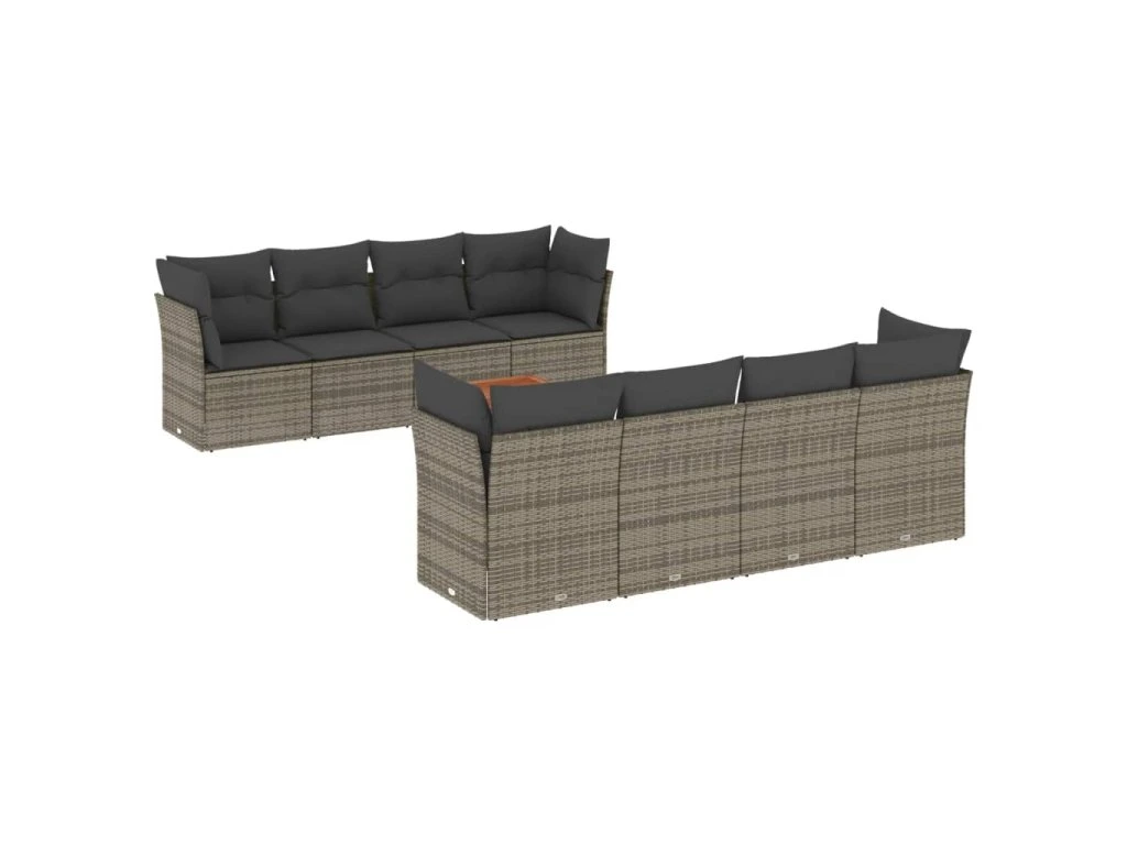 9dílná zahradní sedací souprava s poduškami šedá polyratan 3223526
