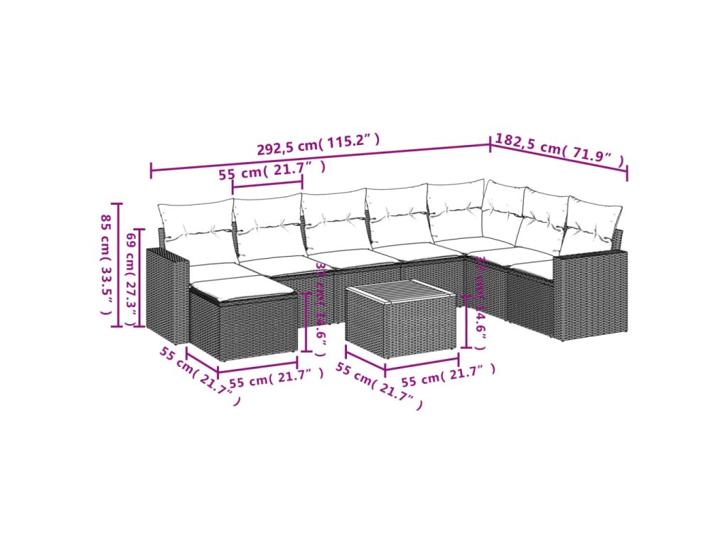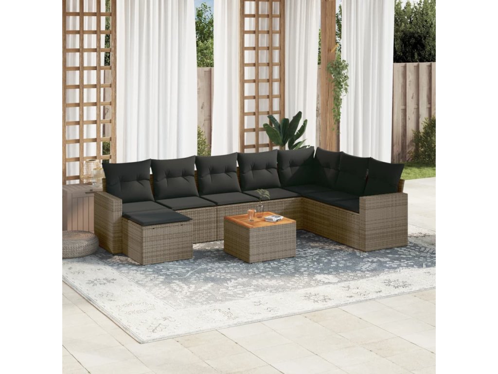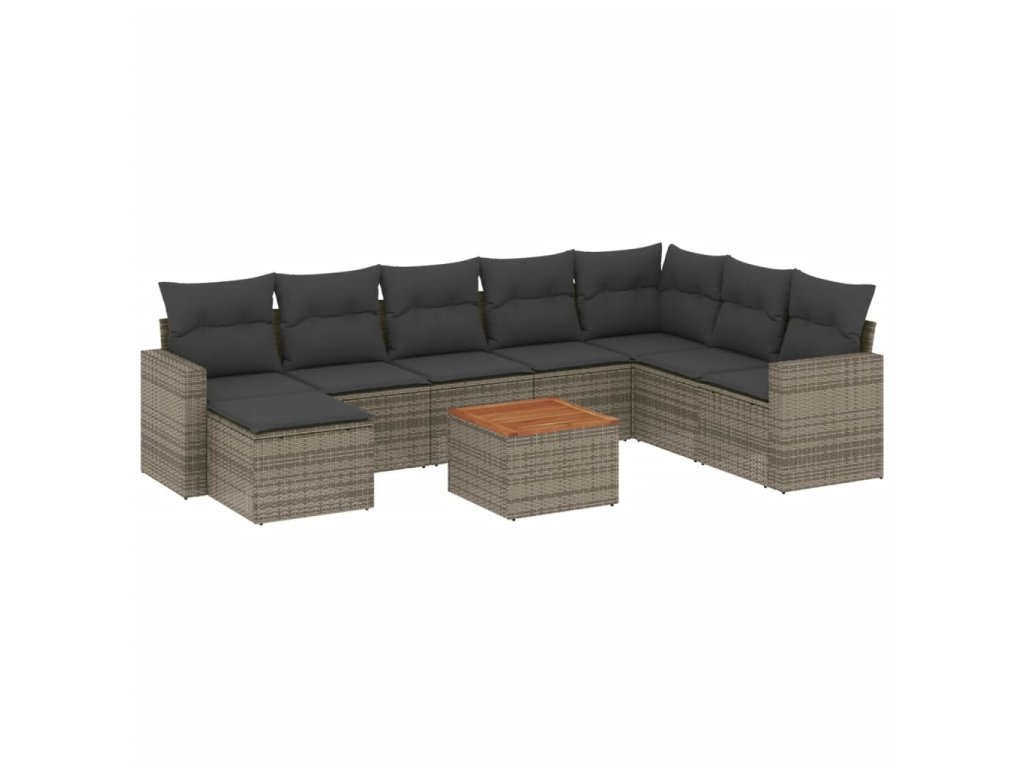 9dílná zahradní sedací souprava s poduškami šedá polyratan 3224261