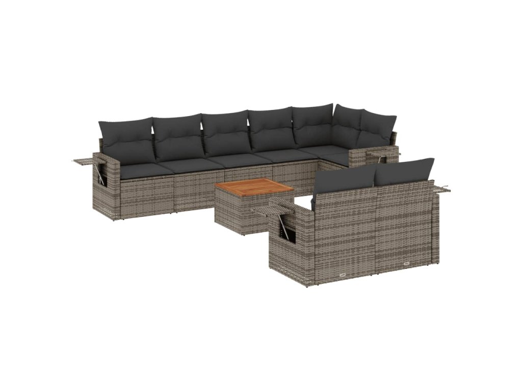 9dílná zahradní sedací souprava s poduškami šedá polyratan 3224653