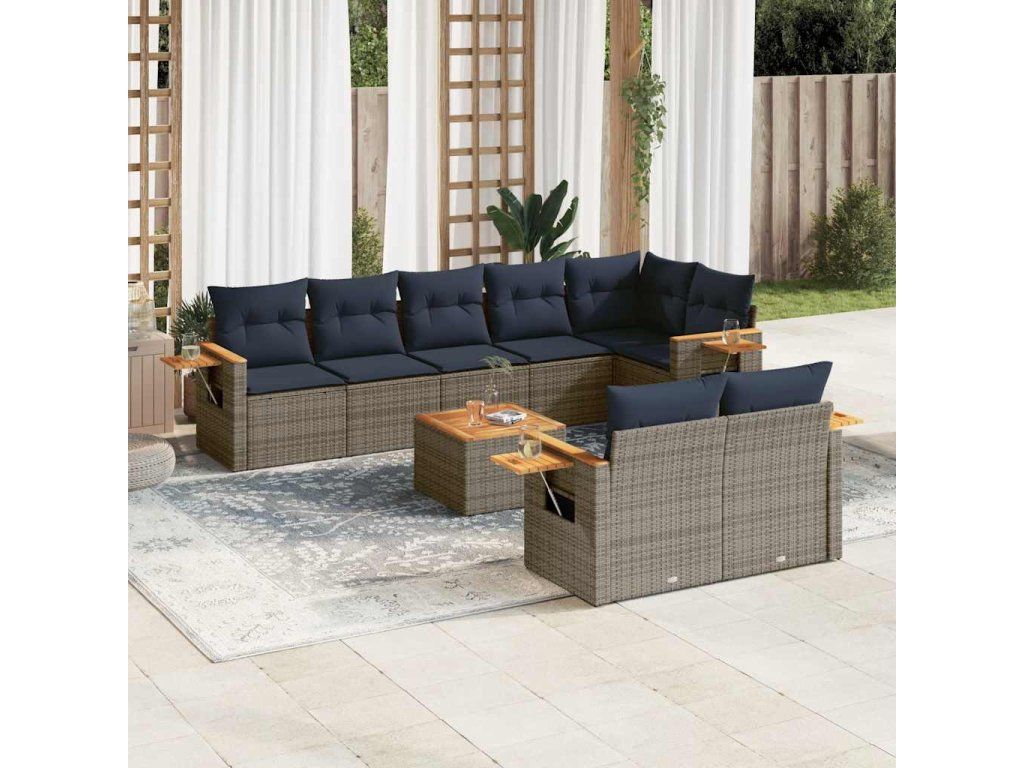 9dílná zahradní sedací souprava s poduškami šedá polyratan 3226999