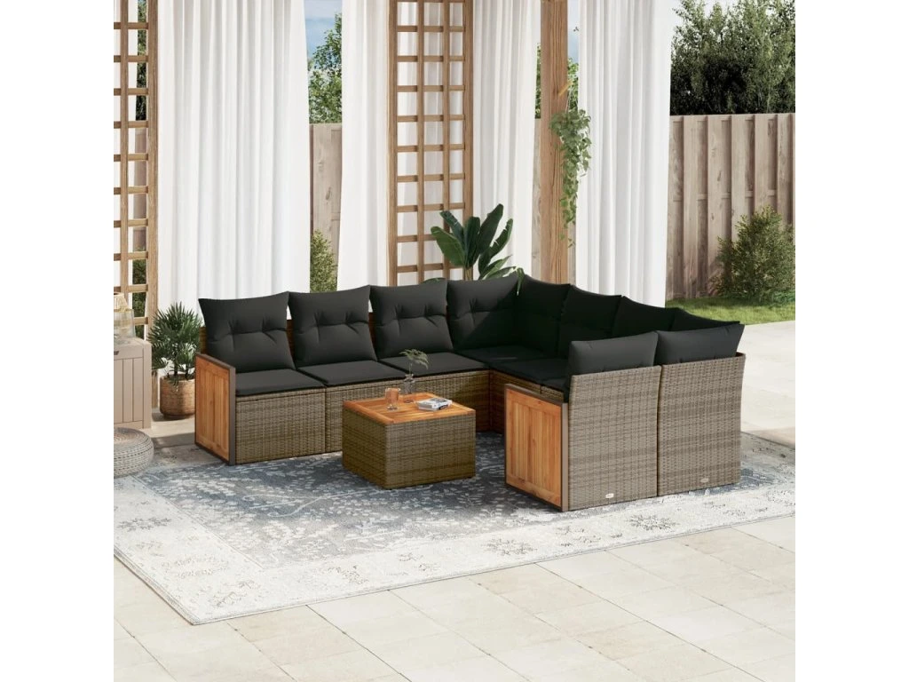 9dílná zahradní sedací souprava s poduškami šedá polyratan 3227509