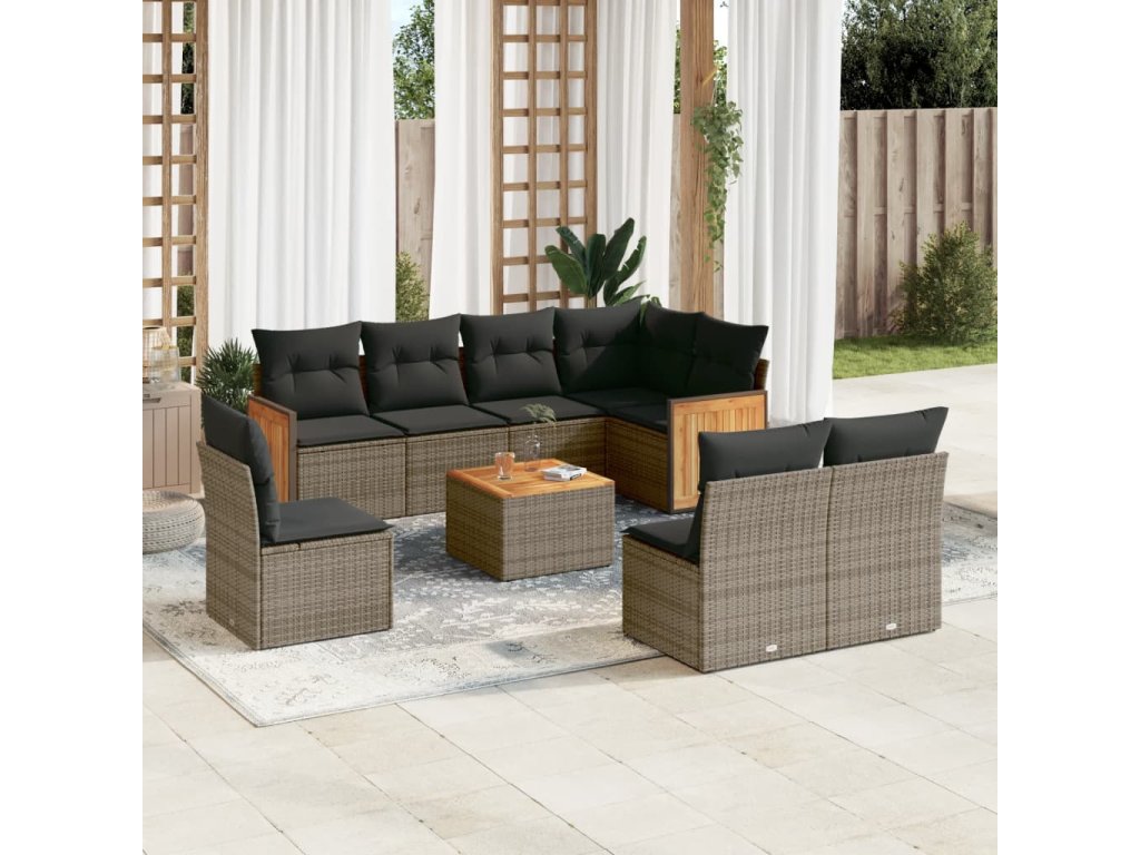 9dílná zahradní sedací souprava s poduškami šedá polyratan 3227733