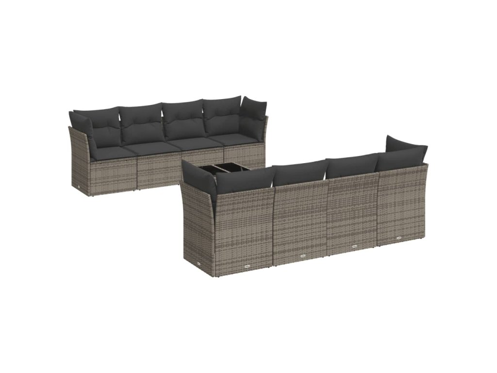 9dílná zahradní sedací souprava s poduškami šedá polyratan 3249149