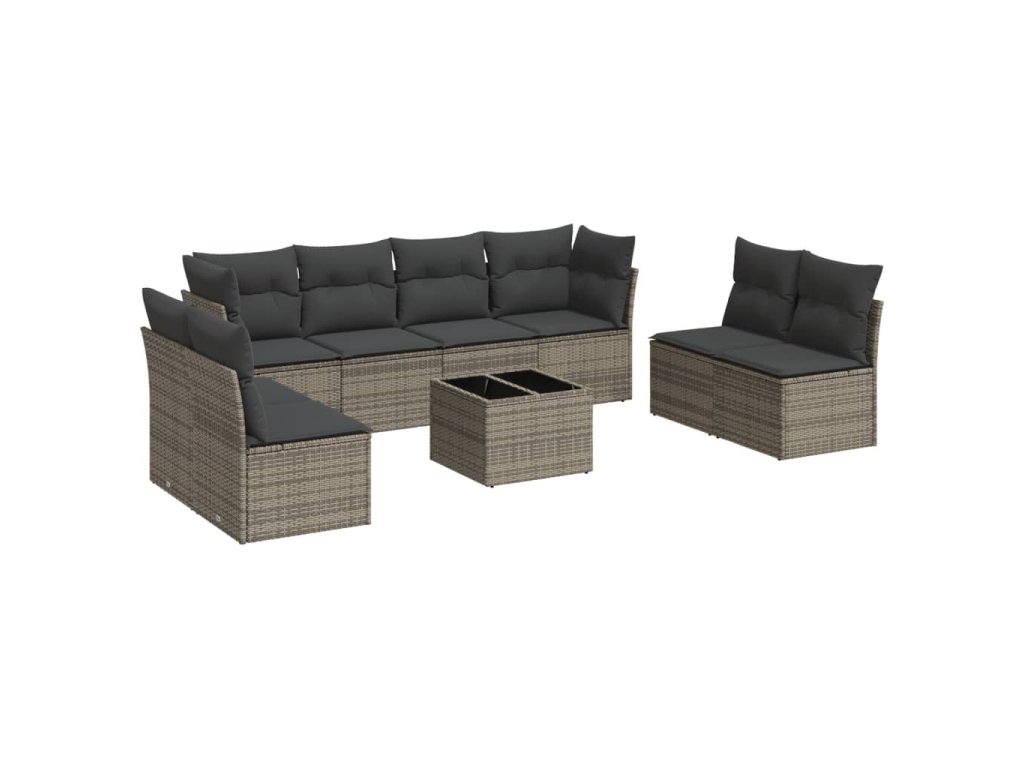 9dílná zahradní sedací souprava s poduškami šedá polyratan 3249299