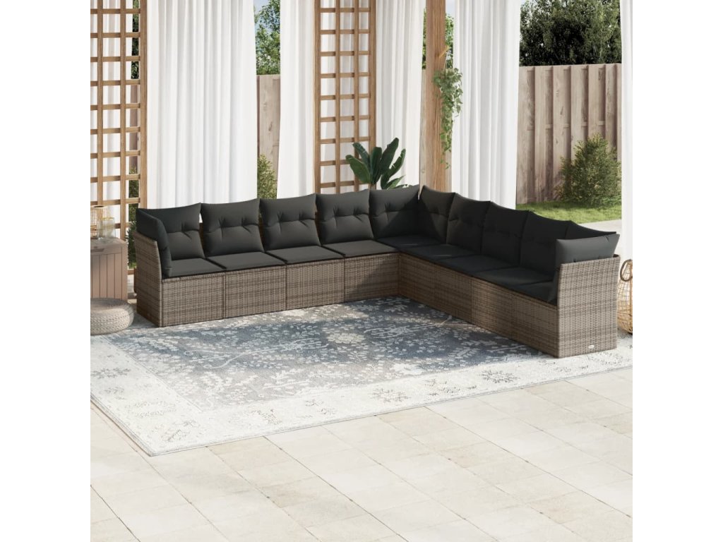 9dílná zahradní sedací souprava s poduškami šedá polyratan 3249619