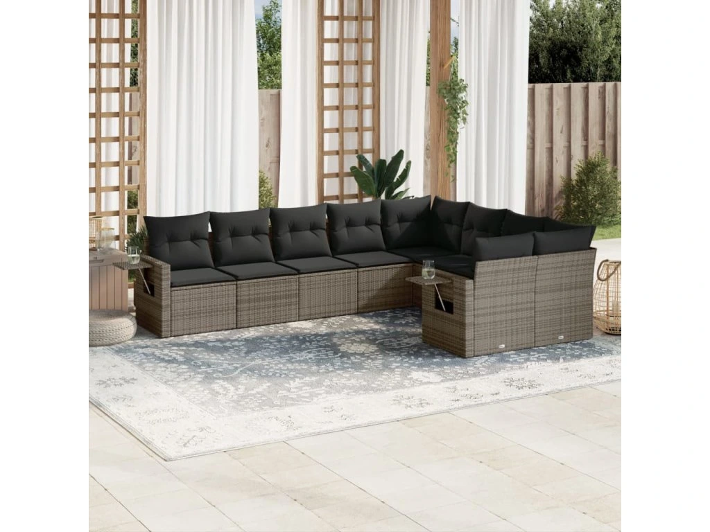 9dílná zahradní sedací souprava s poduškami šedá polyratan 3252977