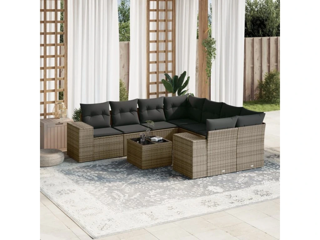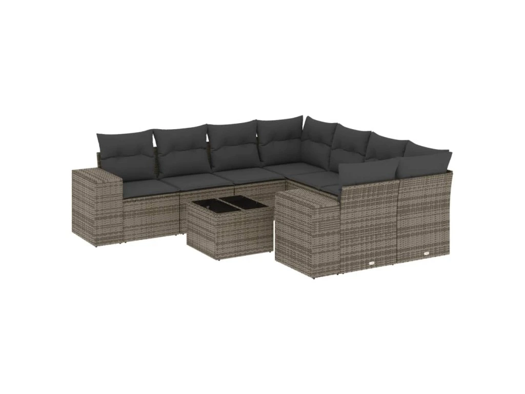 9dílná zahradní sedací souprava s poduškami šedá polyratan 3254697
