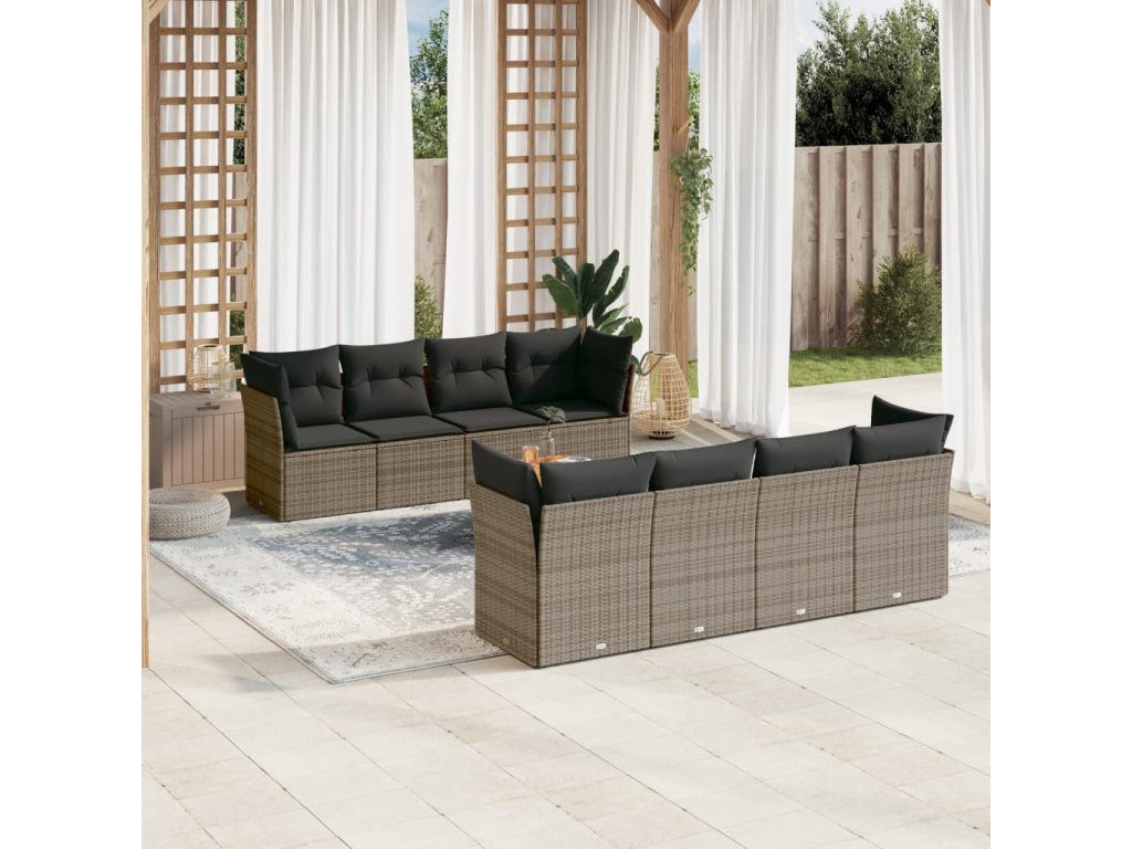 9dílná zahradní sedací souprava s poduškami šedá polyratan 3255857