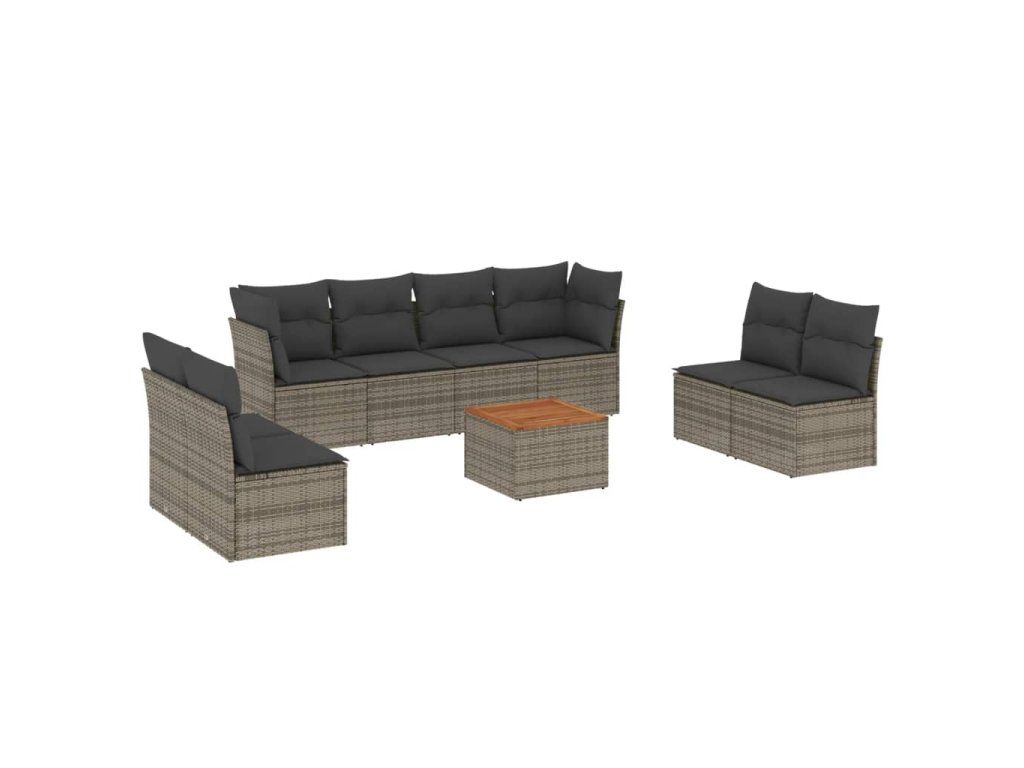 9dílná zahradní sedací souprava s poduškami šedá polyratan 3255913