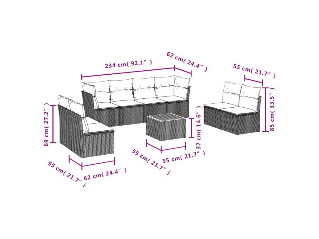 Tato zahradní sedací souprava je dokonalým doplňkem vaší zahrady, terasy nebo dvorku a poskytne vám pohodlné a příjemné místo, kde si můžete povídat s rodinou a přáteli nebo jen tak odpočívat a užívat si pobyt venku.