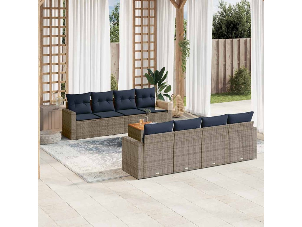 9dílná zahradní sedací souprava s poduškami šedá polyratan 3256376