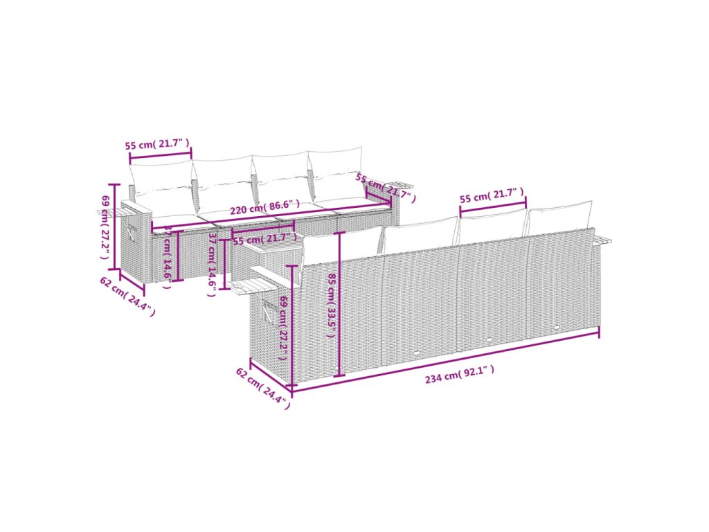 9dílná zahradní sedací souprava s poduškami šedá polyratan 3259064