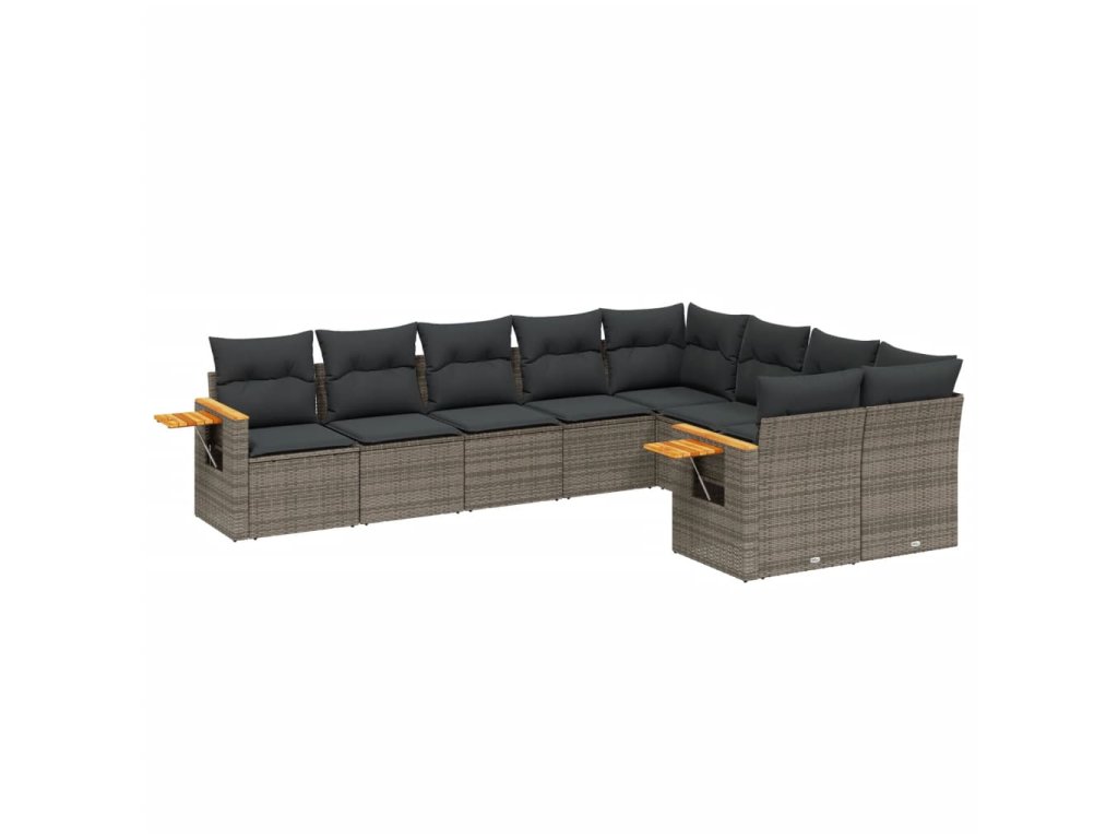 9dílná zahradní sedací souprava s poduškami šedá polyratan 3259547