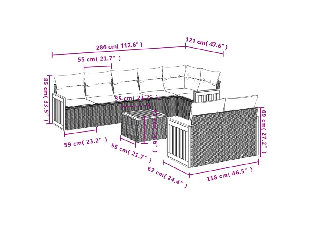 Tato zahradní sedací souprava je dokonalým doplňkem vaší zahrady, terasy nebo dvorku a poskytne vám pohodlné a příjemné místo, kde si můžete povídat s rodinou a přáteli nebo jen tak odpočívat a užívat si pobyt venku.