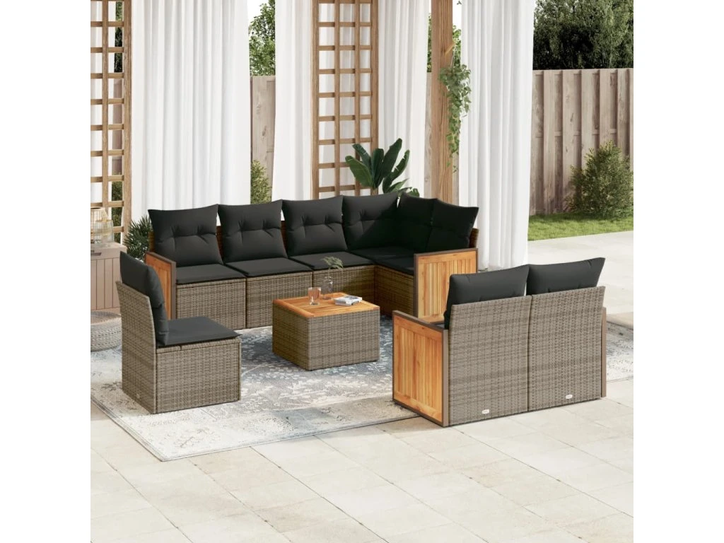 9dílná zahradní sedací souprava s poduškami šedá polyratan 3260254