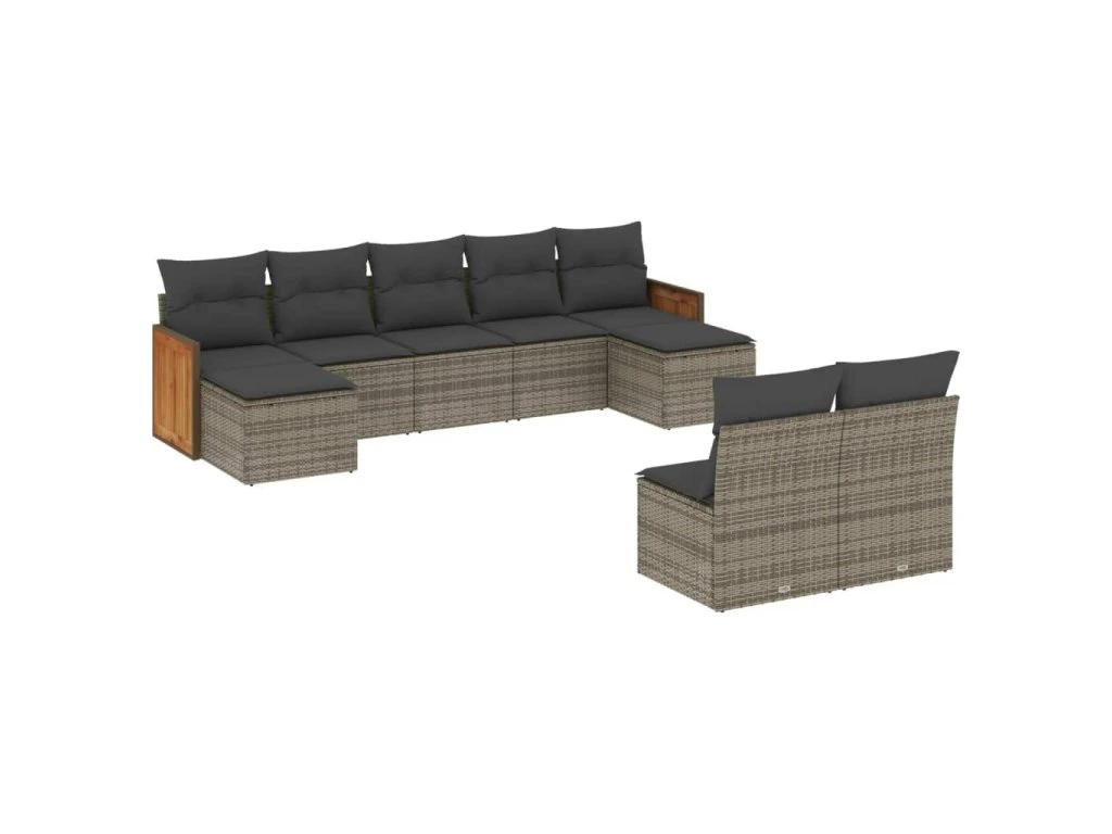 9dílná zahradní sedací souprava s poduškami šedá polyratan 3260457