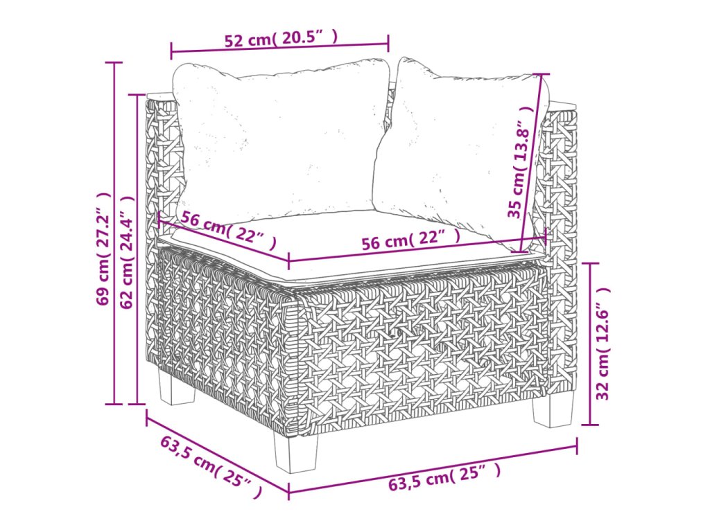 - Rozměry podušky na sedák (středový díl): 63,5 x 56,5 x 3 cm (Š x H x T)