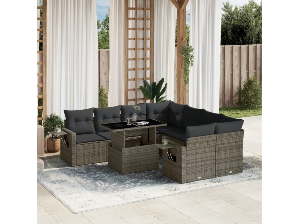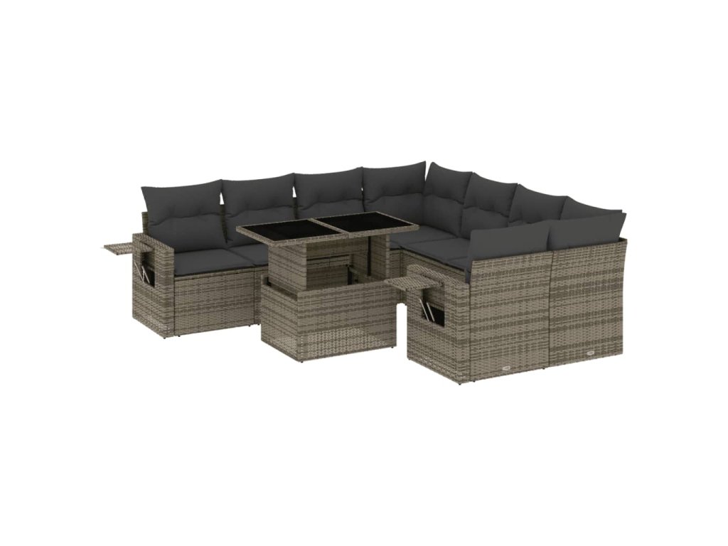9dílná zahradní sedací souprava s poduškami šedá polyratan 3267800