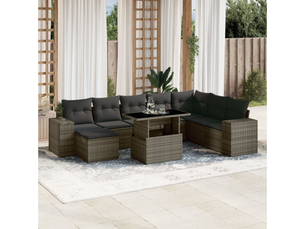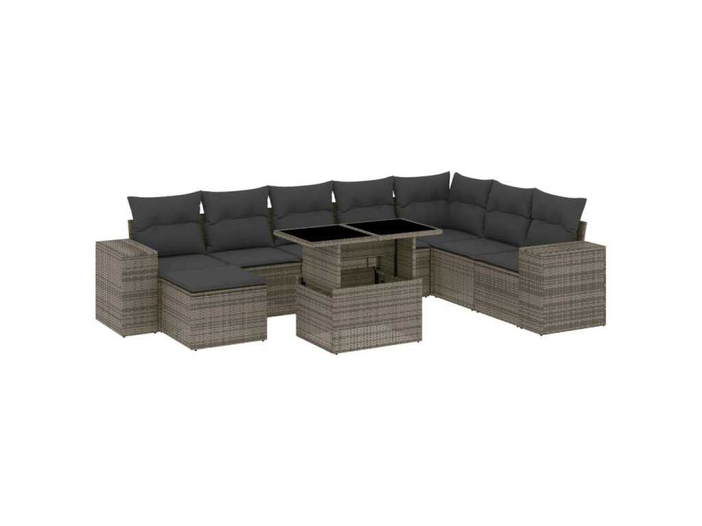 9dílná zahradní sedací souprava s poduškami šedá polyratan 3269360