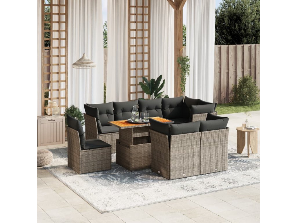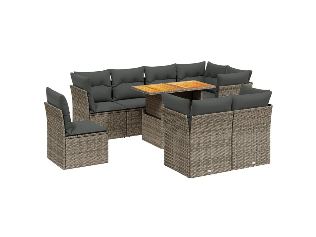 9dílná zahradní sedací souprava s poduškami šedá polyratan 3270934