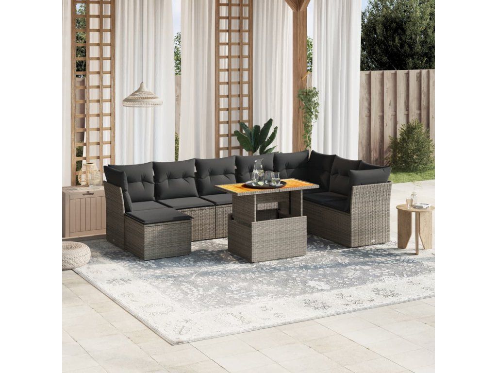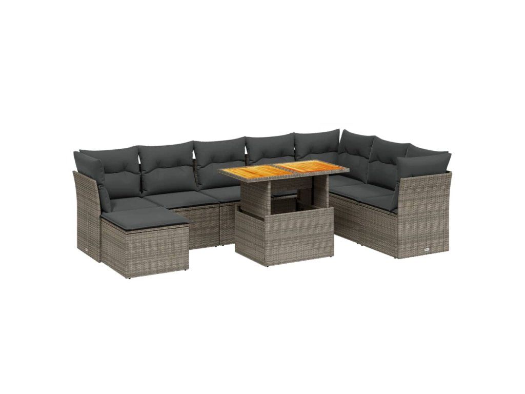 9dílná zahradní sedací souprava s poduškami šedá polyratan 3270976