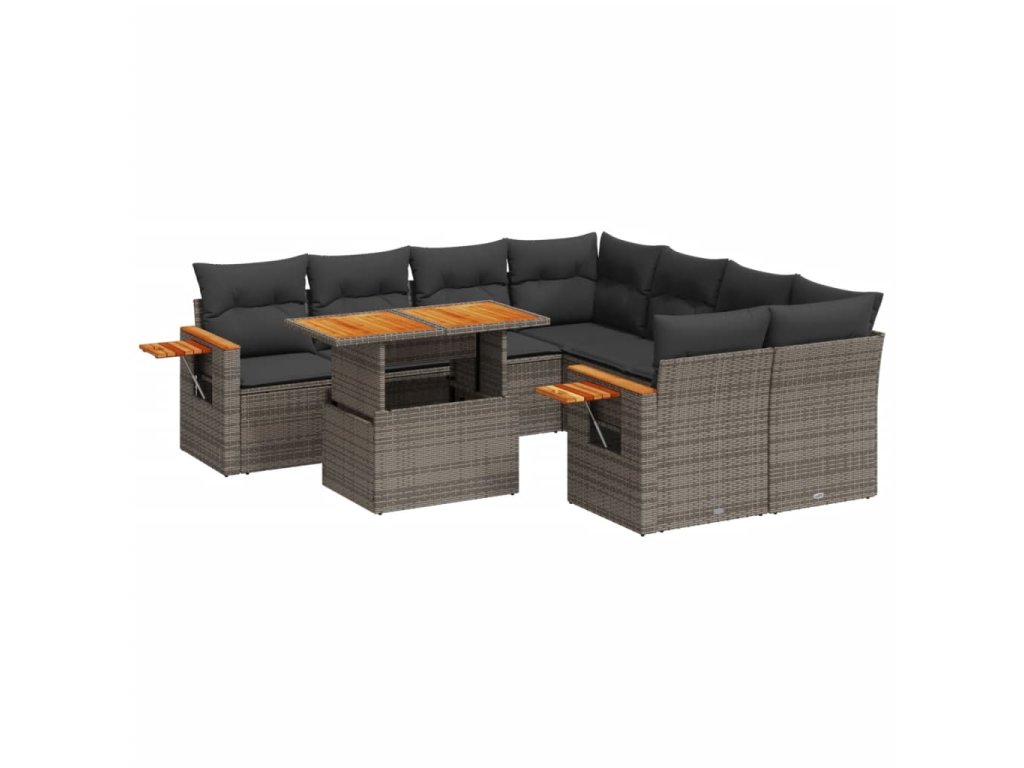 9dílná zahradní sedací souprava s poduškami šedá polyratan 3273447