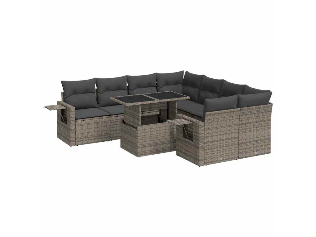 9dílná zahradní sedací souprava s poduškami šedá polyratan 3326451