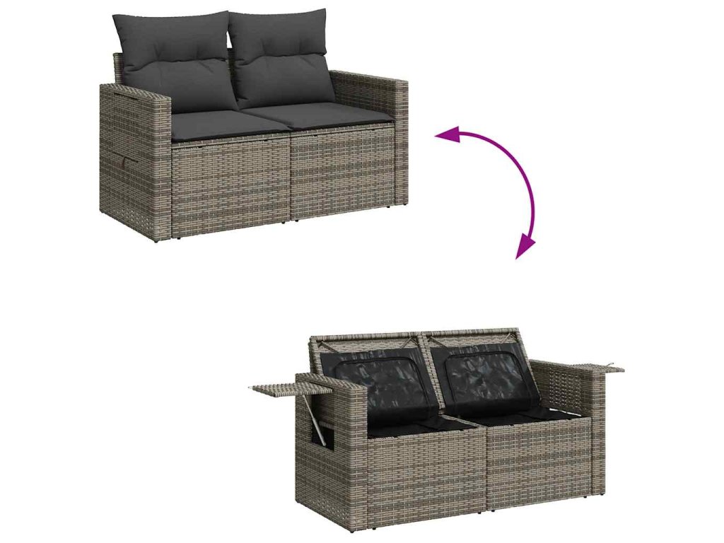 - Úložný prostor s voděodolným vakem: Každý zahradní sedací díl má úložný prostor pod sedákem, který je opatřen voděodolnou vložkou a poslouží vám k ukládání podušek, hraček a dalších věcí. Vnitřní vak má horní kryt a lze jej bezpečně připevnit k sedáku pomocí suchého zipu, což zaručí větší stabilitu.