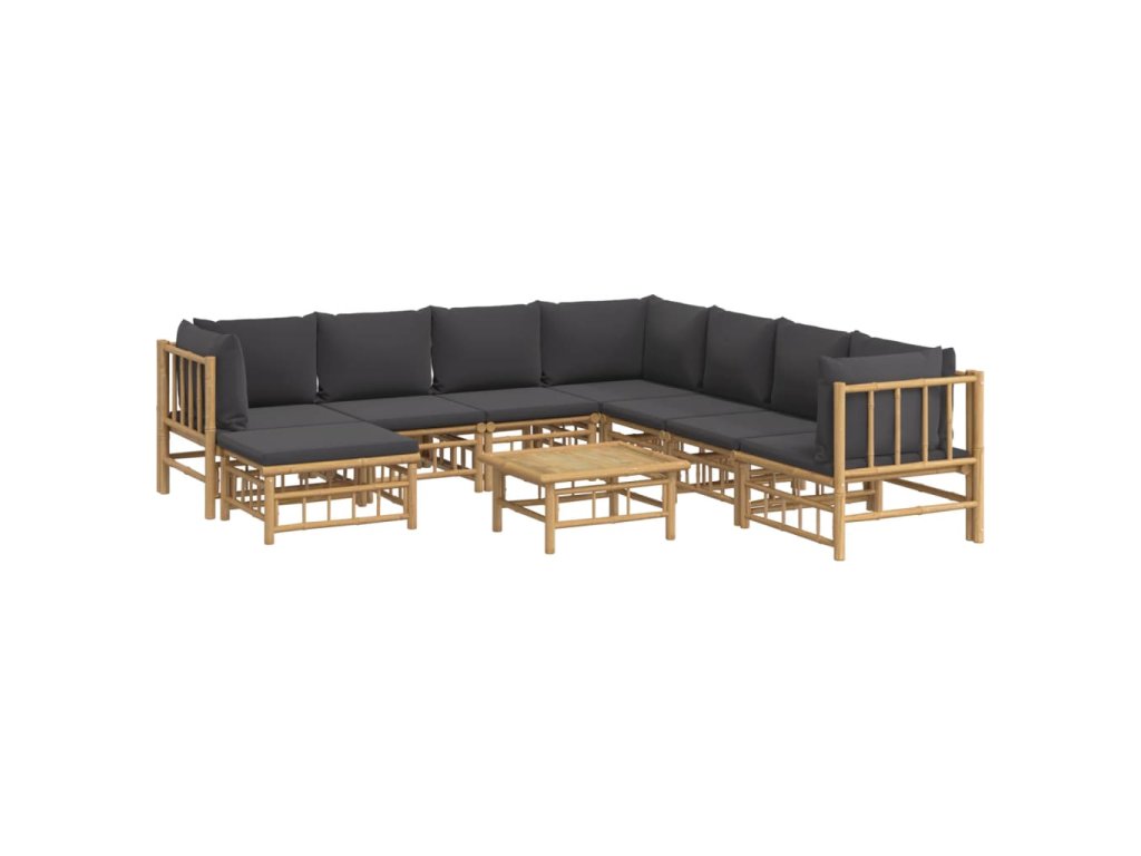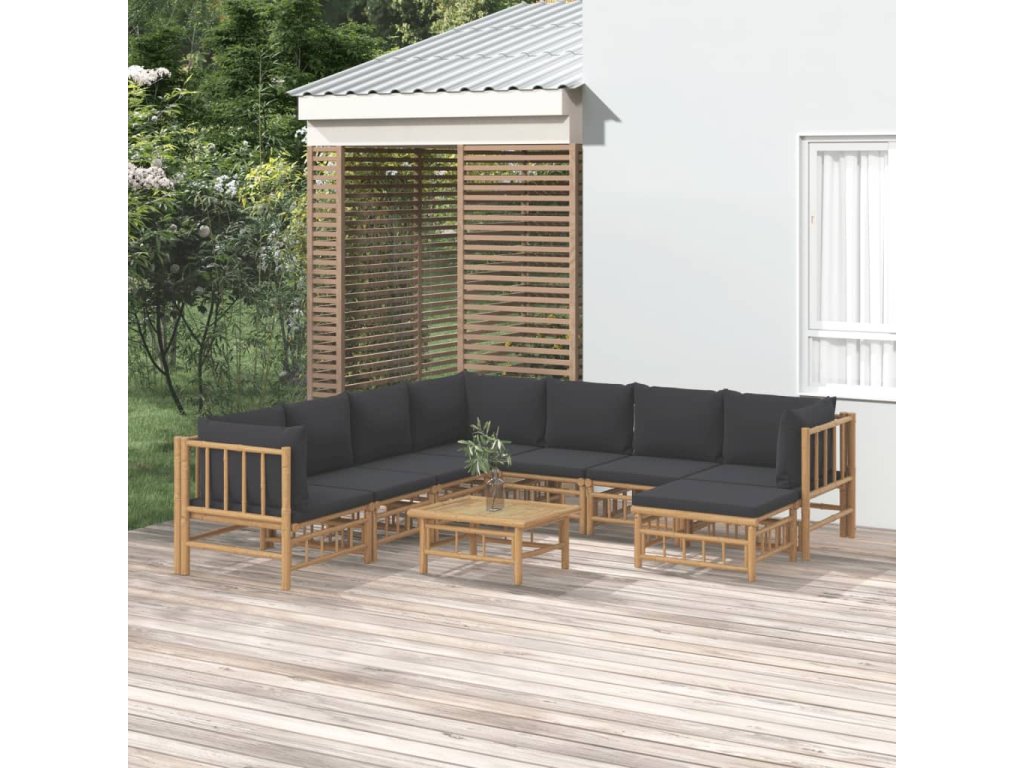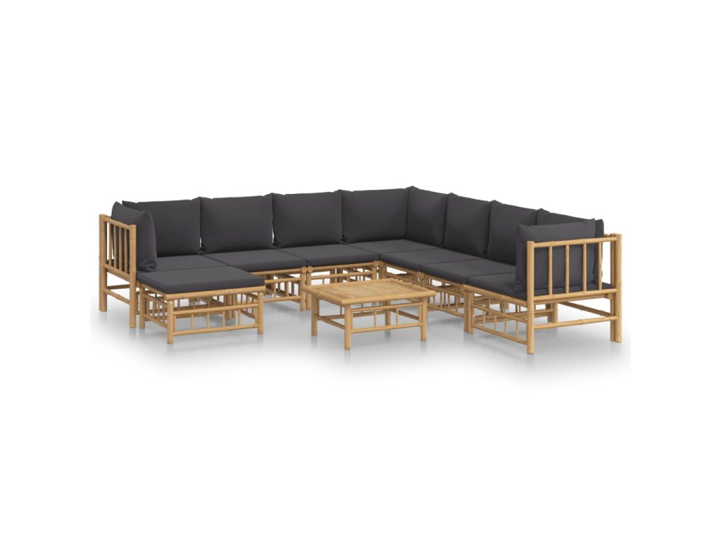9dílná zahradní sedací souprava s tmavě šedými poduškami bambus 3155228