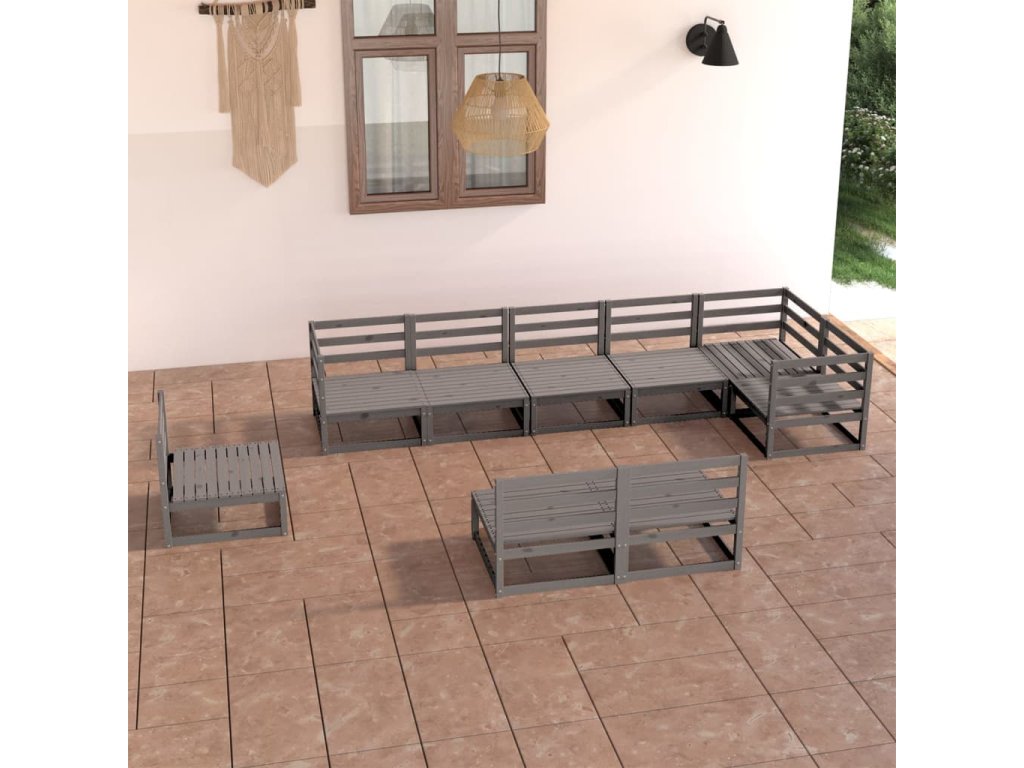 9dílná zahradní sedací souprava šedá masivní borovice 3075636