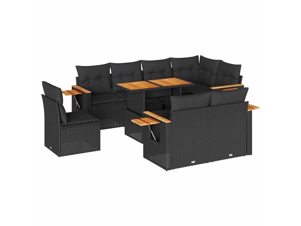 9dílná zahradní sestava s poduškami černá polyratan akácie 3327611