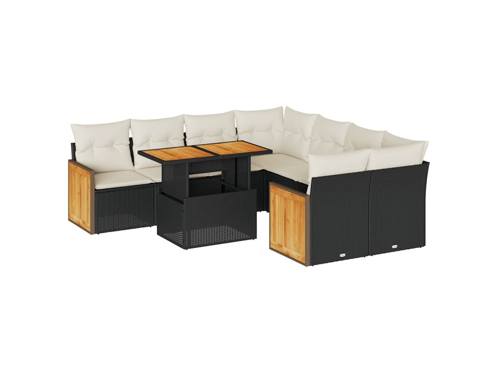 9dílná zahradní sestava s poduškami černá polyratan akácie 3327689