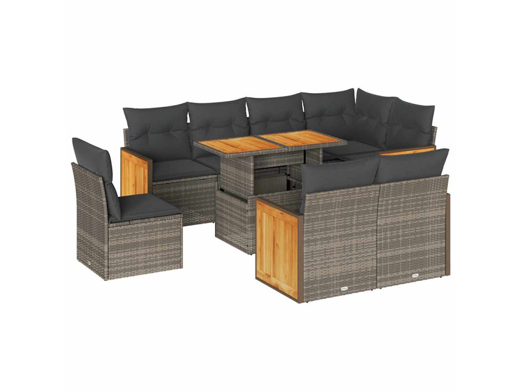9dílná zahradní sestava s poduškami šedá polyratan akácie 3327728