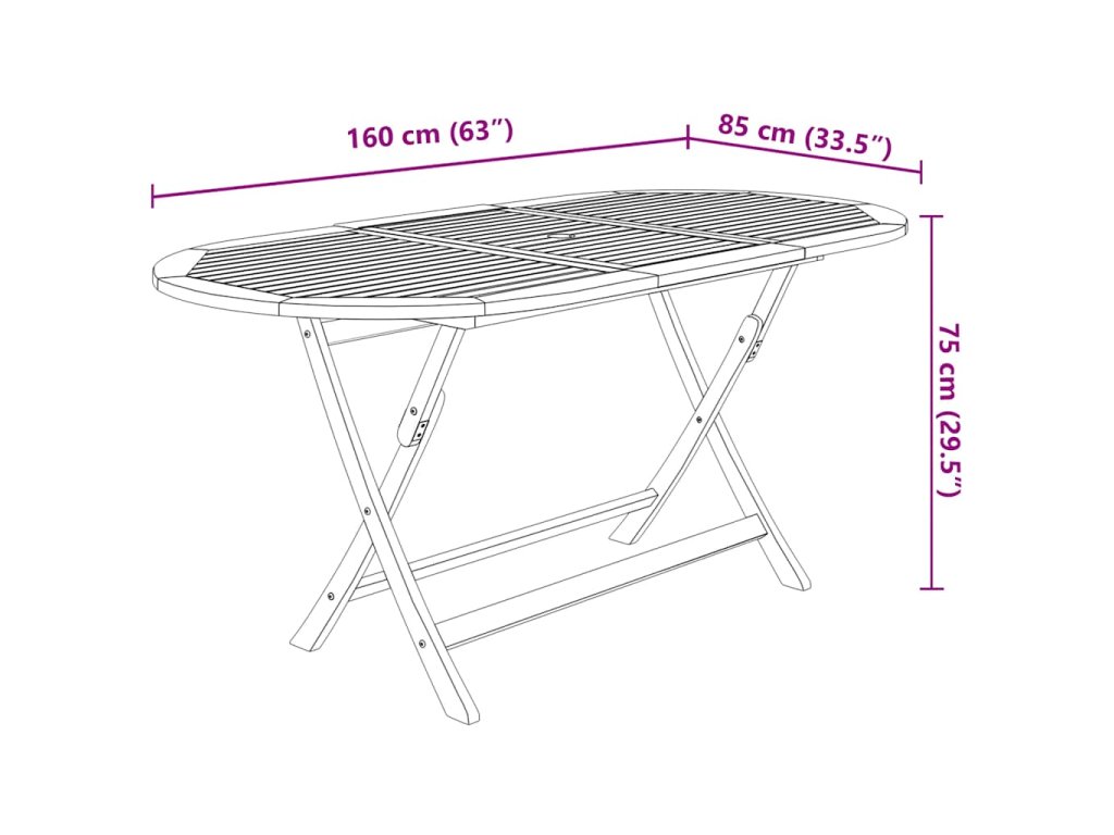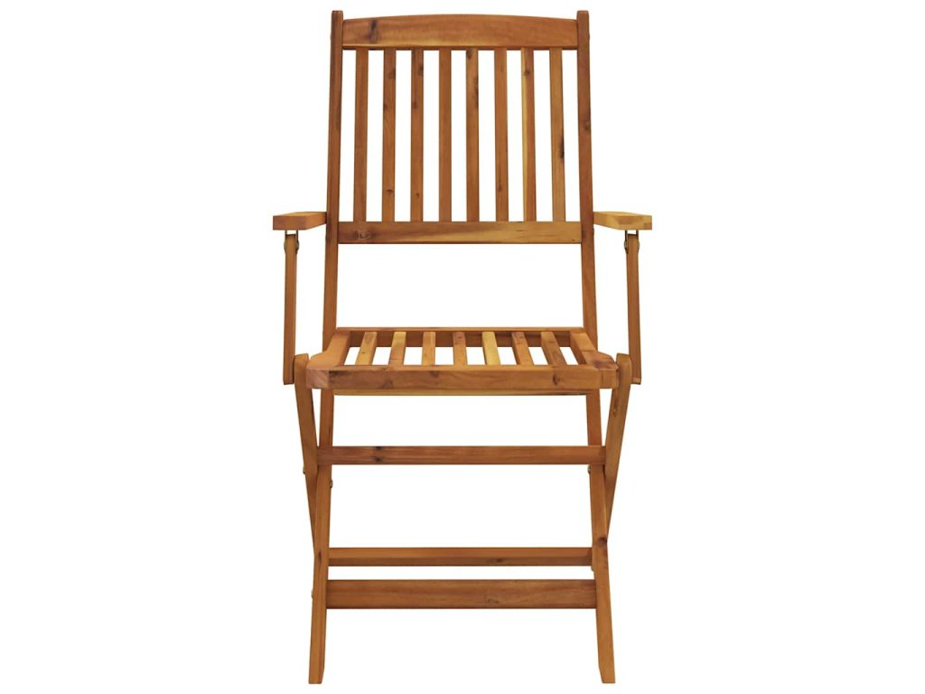 Zahradní jídelní set je vyrobený z masivního akáciového dřeva. Jedná se o tvrdé dřevo z tropů, které je odolné vůči povětrnostním vlivům a má dlouhou životnost. Olejem napuštěný povrch nábytku snadno vyčistíte navlhčeným hadříkem. Jak zahradní židle, tak stůl je možné složit, aby zbytečně nepřekážely, když je zrovna nepoužíváte.