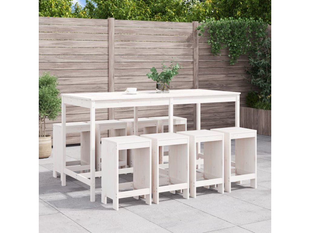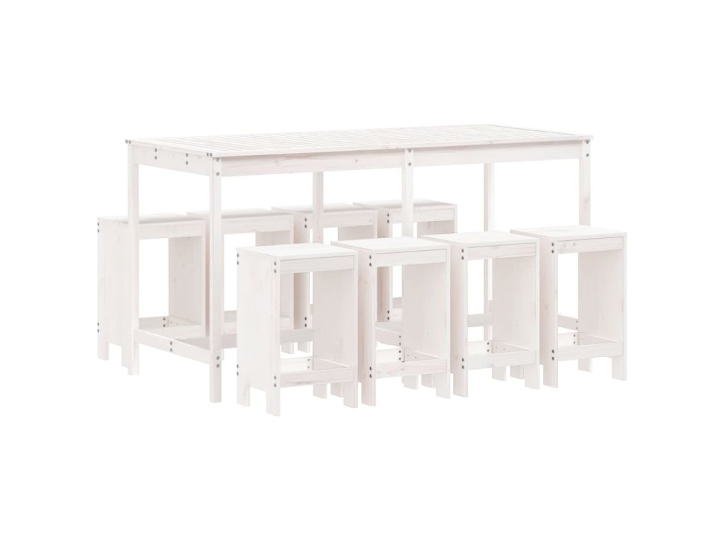 9dílný zahradní barový set bílý masivní borové dřevo 3157758