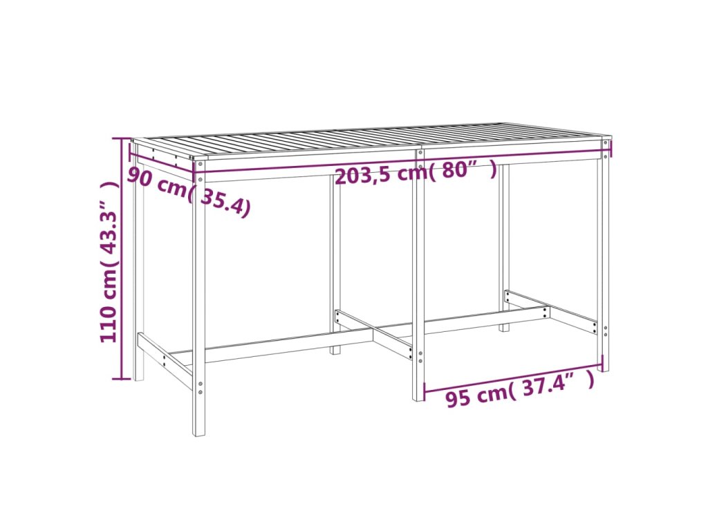 - Rozměry zahradního stolku: 203,5 x 90 x 110 cm (D x Š x V)