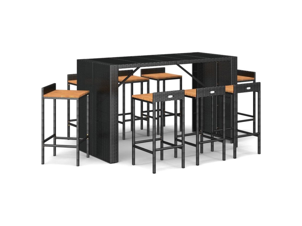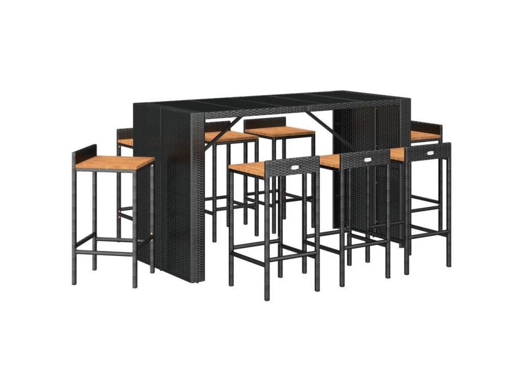 9dílný zahradní barový set černý polyratan a masivní akácie 3187688