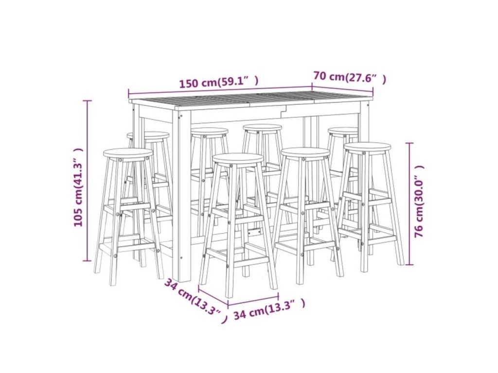 9dílný zahradní barový set masivní akáciové dřevo 3116024