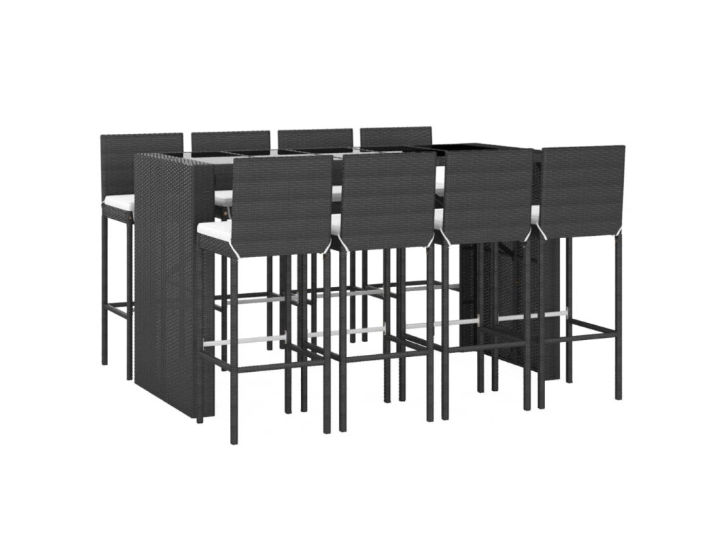 9dílný zahradní barový set s poduškami černý polyratan 3187629