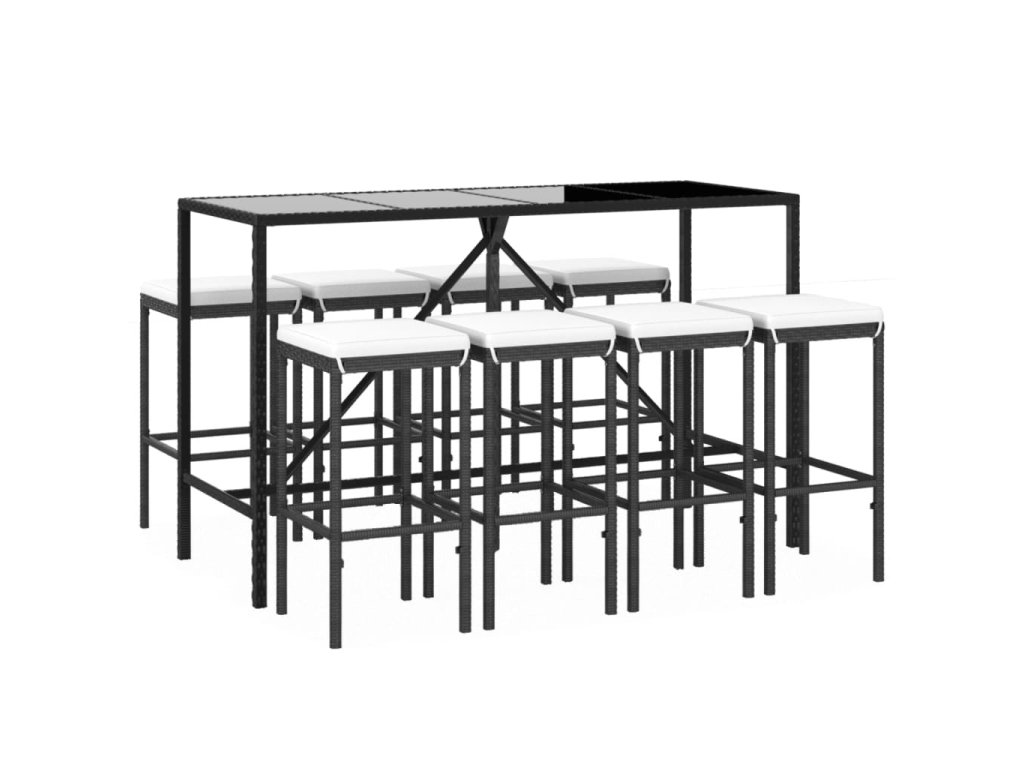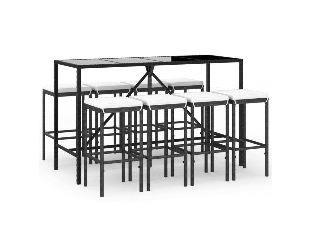 9dílný zahradní barový set s poduškami černý polyratan 3187637