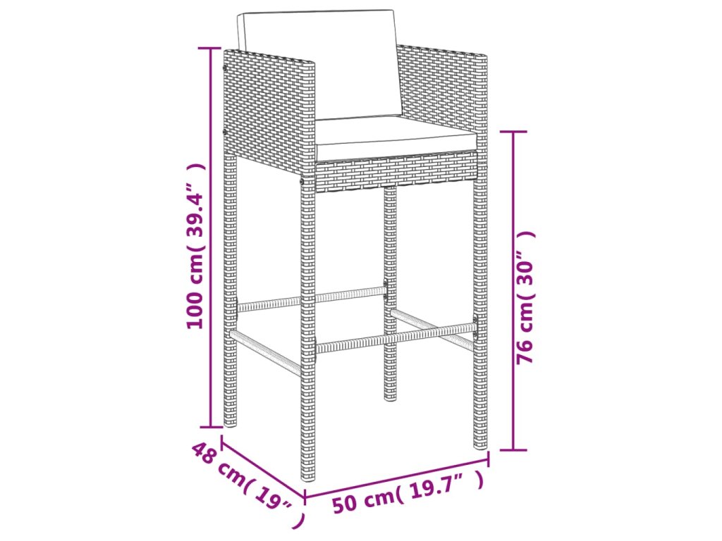 9dílný zahradní barový set s poduškami hnědý polyratan 3200650
