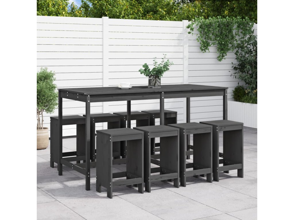 9dílný zahradní barový set šedý masivní borové dřevo 3157759