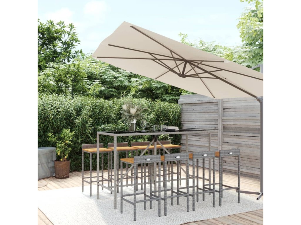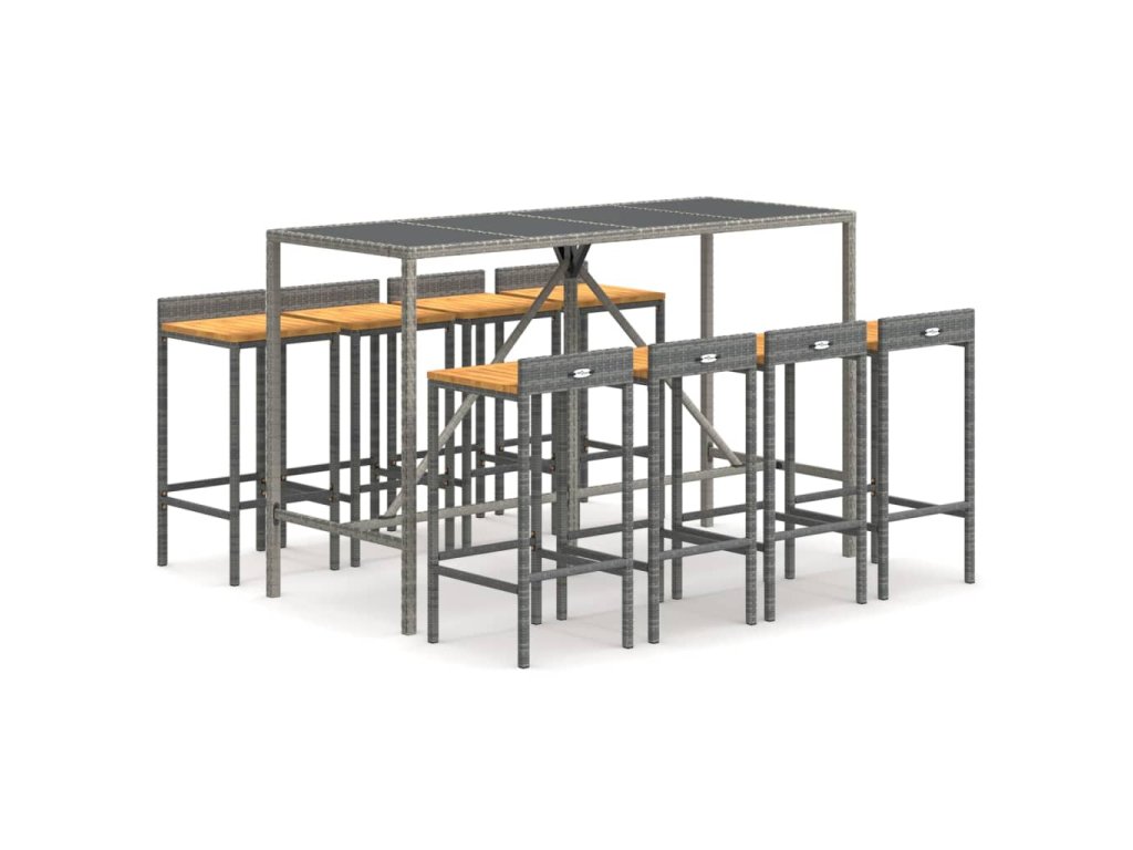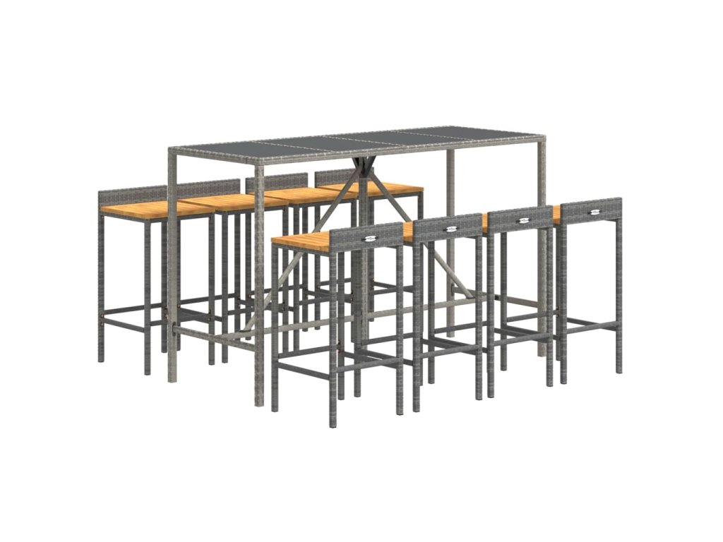 9dílný zahradní barový set šedý polyratan a masivní akácie 3187681