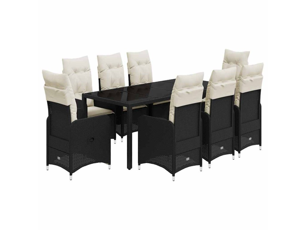 9dílný zahradní bistro set s poduškami černý polyratan 3276995